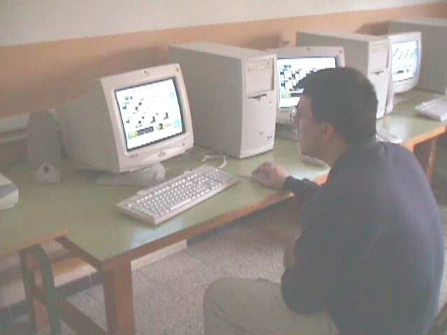 El mestre va utilitzar ordinadors de l’aula d’informàtica-1 de l’Institut i els alumnes la majoria estaven reunits junts en l’aula d’Informàtica-2. Salvant els diferents problemes típics de connexió i coordinació que es produeixen en aquests tipus d’activitats, els nois i noies van poder realitzar algunes partides contra el mestre.