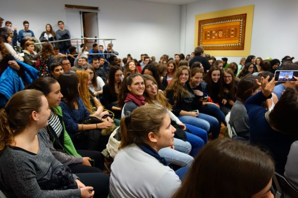 La majoria dels assistents, un centenar llarg de persones, eren estudiants d'escoles i instituts de la ciutat. A ells, Sontheimer va narrar la història de la seva família a Alemanya, perseguida pel règim nazi. Molts dels seus membres van morir en camps de concentració. Una història que els seus pares, que s'havien establert a Barcelona, li van amagar "per por, precaució i protecció", va explicar. No va ser fins que va morir la seva mare que es va assabentar de tot quan va trobar unes capses en un armari.