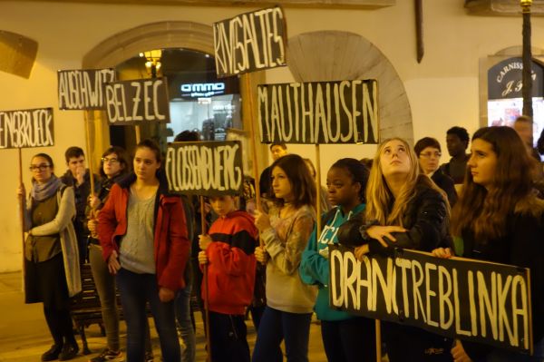 Després d'un parlament inicial a la Plaça Montserrat, la marxa ha transcorregut pels carrers de l'antic call jueu de Manresa -Carrer Bastardes- fins arribar a la Plana de l'Om on s'han llegit alguns testimonis de supervivents de l'holocaust. S'ha recordat que avui en el món hi continua havent violència, racisme i i injustícies. Tal i com es deia en un dels testimonis "recordar no és solament una missió per prevenir mals del futur. També és una obligació envers els que han patit en el passat per tortures que ni podem concebre".