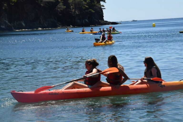 Ens hem reunit al primer punt del dia que era l'activitat de piragüísme per parelles a la cala. Hem partit el grup i una meitat feia l'activitat mentrestant l'altra s'esperava banyant-se o prenent el sol.