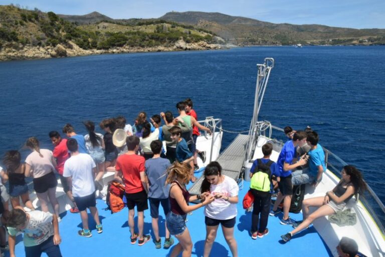 Després vam agafar un vaixell que ens va portar fins a cala Montjoi per fer el crèdit de síntesi. Quan vam arribar ens van ensenyar l'establiment, i llavors vam començar les activitats amb els grups del crèdit de cadascú.