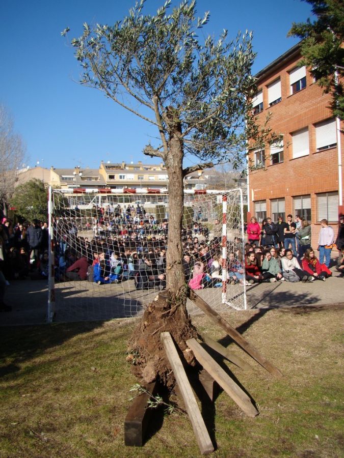 Aquets 30 de gener, els nostre institut s’ha adherit a la celebració del Dia Escolar per la Noviolència i la Pau . Enguany el lema ha estat: Plantem vida. Diferents terres procedents de punts geogràfics familiars i variats, han ajudat en l’arrelament de l’olivera que hem plantat. L'acte s’ha iniciat amb l’acció del Taller de Teatre. Tot seguit l’alumnat de clàssiques ens ha fet gaudir amb l’oratòria de “L'olivera en la cultura clàssica i el Mediterrani”, acompanyada d’un recitatiu de l’inici de la Ilíada d’Homer, adaptat. Una miqueta de música: Somewhere over the rainbow ; amb la veu de Maria Campabadal acompanyada al piano per la Martina. Seguidament, alumnat i professorat hem plantat l’olivera; acompanyats del recitatiu de Versos per la Pau, a dues veus; donant visibilitat a les 25 llengües que convivim al centre. Ha clos l’acte la guitarra i veu de la Marina Castell i la Laia Pons, amb una composició pròpia: L’Arbre de la ciutat. “Conta’ns, olivera, quin és el camí d’arrelament a la Pau”