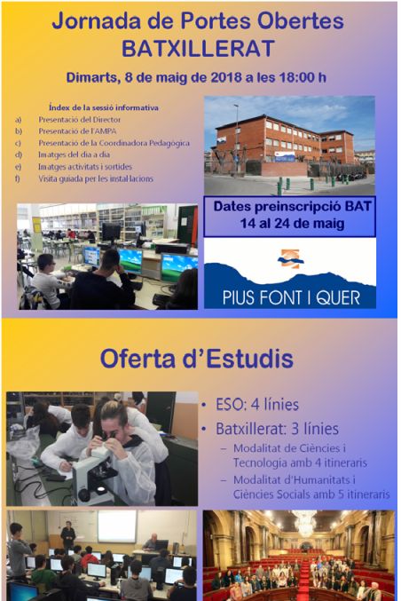 Enguany, el nostre centre serà present a la fira de l'estudiant de Manresa presentant els itineraris formatius que oferim de cara a cursar les diferents modalitats de Batxillerat.