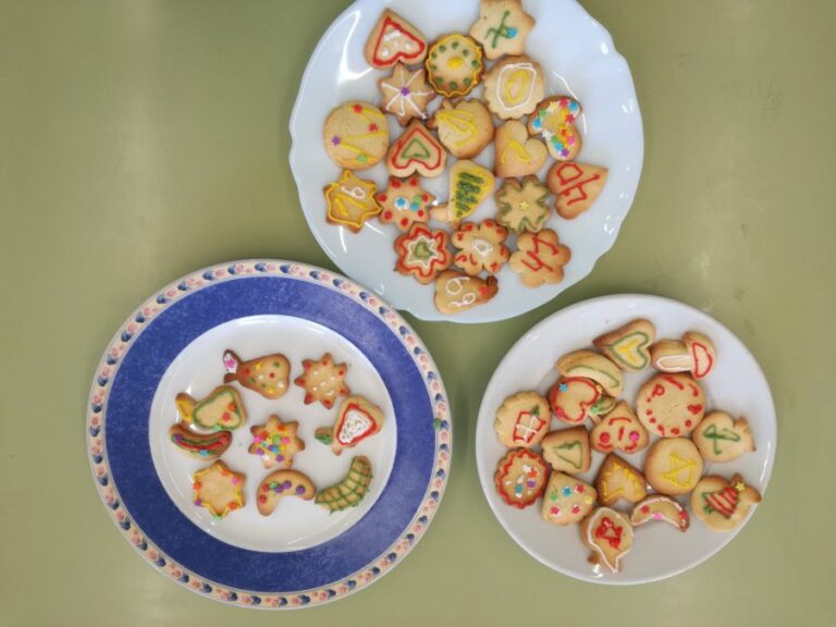 Per posar punt i final al trimestre, els nostres cuiners van decidir elaborar unes senzilles galetes de Nadal. Per fer-les, només vam necessitar mantega, farina, ous, sucre i una mica d'imaginació per a decorar. Primer vam fer la massa amb tots els ingredients fins que vam aconseguir que tot quedés ben uniforme. Després, vam anar fent les formes amb els motlles que teníem i els vam anar posant a les safates de forn. Un cop ho vam tenir, les vam portar a coure 15 minuts al forn, les vam deixar refredar i les vam decorar amb sucre de colorins. I us podem ben assegurar que ens van quedar… Boníssimes!!