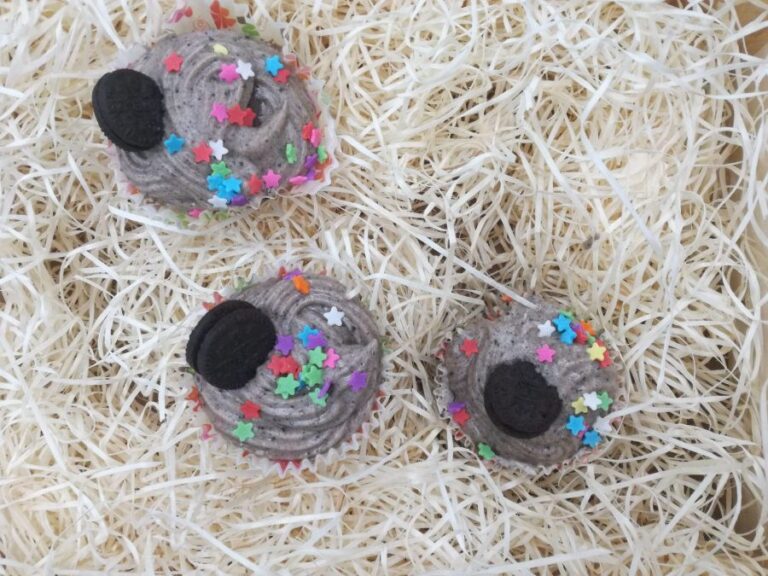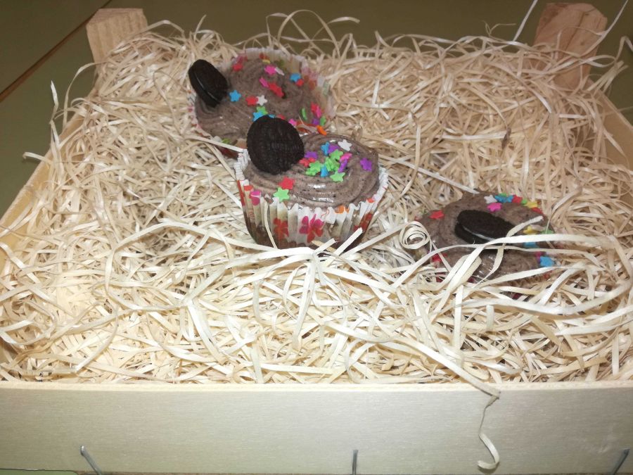 Fa dos dimecres vam decidir de fer un dolços cupcakes d'oreo, però… aix… la que vam "liar"… Volíem canviar la recepta i fer-ne una diferent, ja que no era la primera vegada que fèiem aquestes postres… i va ser un desastre total… la massa de les magdalenes era molt bona i esponjosa, però al fer la buttercream (la crema que posem per sobre), vam tenir moltes dificultats: se'ns va obstruir la màniga pastissera i no sortia res… ho vam haver de posar en un bol i passar pel túrmix… el sucre de llustre va volar pels aires, ens van caure estrelles de decoració per terra… però al final, després de molt riure i una bona estona de feina, vam aconseguir el nostre objectiu… a veure què us semblen!!
