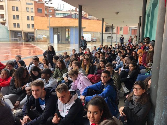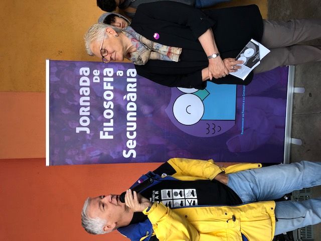 El tarannà que inspira aquesta jornada, és portar la Filosofia fora de les aules i escampar-la per les nostres àgores: places i carrers. Invitar la ciutadania a participar-hi barrejant-se amb el nostre alumnat. Aquest plantejament sempre té el risc d’haver d’estar pendents de la climatologia. En totes les ocasions anteriors, ens havia acompanyat un temps assolellat, primaveral; però en aquesta setena hem trencat la norma. El divendres 24, es va llevar rúfol i persistentment plujós. De cop i volta, vam haver de canviar els espais oberts del Passeig Pere III, per la Plaça Porxada, el Centre Cultural del Casino i l’espai del Monestir de les Caputxines. Però la pluja no ens va aturar!