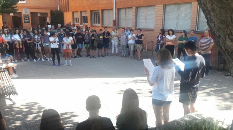 El divendres 27, la María i el Guillem de 1r de Batxillerat van llegir un manifest sobre el canvi climàtic, a les 12:20 h sota l'olivera, per a tot l'alumnat assistent i també per al professorat.