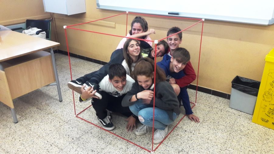 Sabeu quants alumnes de 1r d'ESO caben en un metre cúbic? Podeu fer les vostres aproximacions a partir de la fotografia!