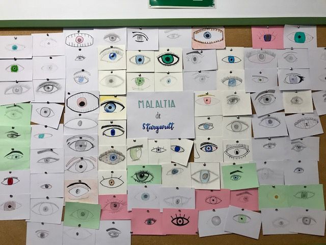 Des de fa unes setmanes, a tutoria s'ha treballat sobre aquest tema. S'ha aprofundit sobre algunes malalties poc conegudes com la malaltia de Stargardt, la xerodèrmia pigmentosa,… i sobretot l'epidermòlisi ampul·lar o "pell de papallona". Per tal de tenir-les molt presents, s'han decorat alguns dels espais del centre amb elements que ens recorden que hi ha persones que conviuen cada dia amb aquestes patologies.