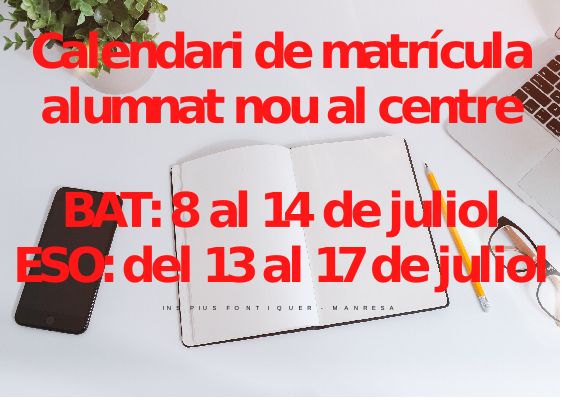 L'alumnat de 4t ESO del centre que farà 1r batxillerat al Pius i ja ha fet la confirmació de plaça i la tria de matèries no ha de fer cap tràmit.