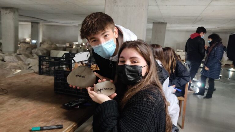 En el marc del Dia Escolar de la No-violència I la Pau -DENIP- amb l’alumnat de 4rt d’ESO hem visitat l’Espai Memòries del Magatzem Lapidari de la Plaça de la Reforma de Manresa.