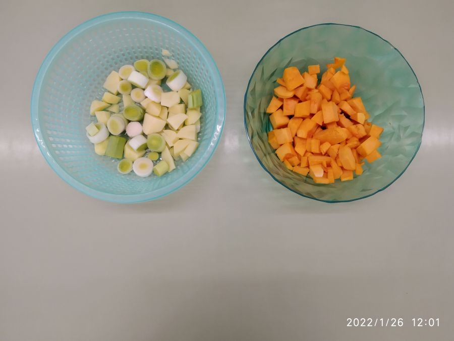 Ja fa temps que estem treballant la piràmide de l'alimentació saludable, i fa unes setmanes que vam treballar el grup de les verdures i hortalisses. Després d'investigar i cercar, vam decidir fer un puré de carbassa. Els ingredients que vam fer servir van ser carbassa, porro, patates, tomàquet, oli i formatget. Vam netejar i tallar tots els ingredients, excepte els formtagets, els vam posar en una olla i vam cobrir tots els ingredients amb aigua. Els vam cuinar a foc mig durant mitja hora. Vam retirar l'olla del foc i amb un cullerot, vam reservar un litre del brou que havia resultat de la cocció. Vam eliminar tot l'excés d'aigua i vam afegir els formatgets i l'oli. Vam agafar el túrmix, i vam triturar tot el purè. Vam afegir una mica del brou reservat per a fer-ho més lleuger. Vam seguir triturant fins que vam trobar la textura dessitjada. Ens va quedar un purè de carbassa per a llepar-se els dits!!