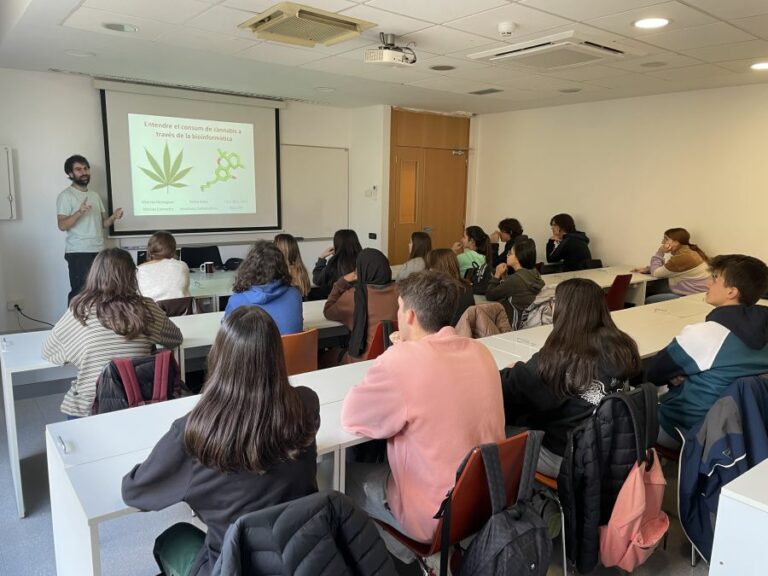 Aquest dijous, l’alumnat de l’optativa de biologia de 2n de batxillerat ha realitzat un taller de bioinformàtica a l’universitat ESCI-UPF on ha pogut conèixer l’aplicació d’aquesta tecnologia en el coneixement del funcionament dels receptors cel·lulars, concretament dels efectes del cànnabis sobre les cèl·lules neuronals. #aplicacionsdelaciència #nousaprenentages #2nbat