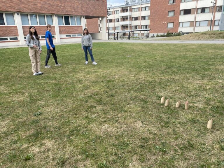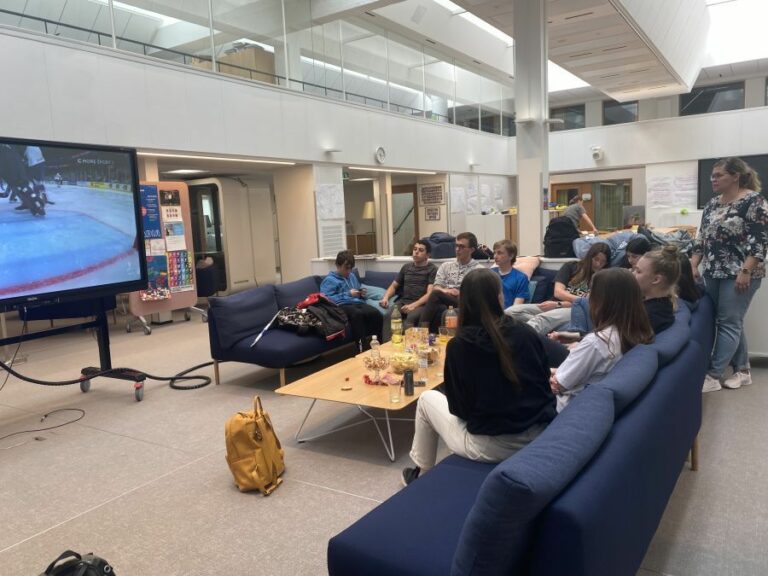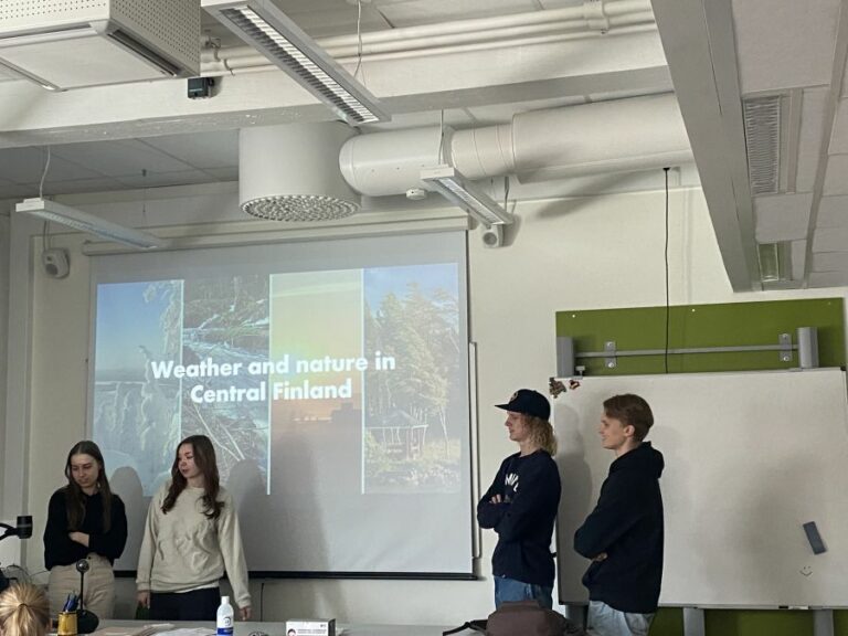 Avui hem començat el dia amb una classe de llengua finlandesa a les 8:15, hem après molts mots i expressions fineses. Després hem presentat tots els projectes els quals hem estat treballant durant aquests dies a l'institut finlandès, molt bona feina: solucions a la disminució de consum de llum, millor reciclatge i transport sostenible. Tant bon punt acabades les presentacions hem anat a dinar i després hem realitzat una ruta amb bicicleta al voltant del llac, Jyväsjärvi. A l'alçada de la Universitat de Biologia, un professor i investigador ens ha fet una xerrada i ens ha demostrat amb provetes que l'aigua del llac està totalment neta gràcies a moltes intervencions de la ciutat en el seu sanejament. Ens ha explicat que fa 40 anys enrere estava totalment contaminada i ara subministren aquesta aigua a Helsinky. Seguidament hem tornat a emprendre la ruta per la vora del llac fins al port. Després la tarda l'hem passada a l'institut veient tots junts un partit de hoquei sobre gel i a les mitges parts jugant a jocs finesos. Tot molt divertit!