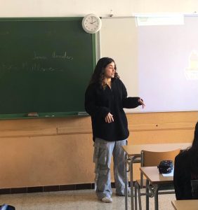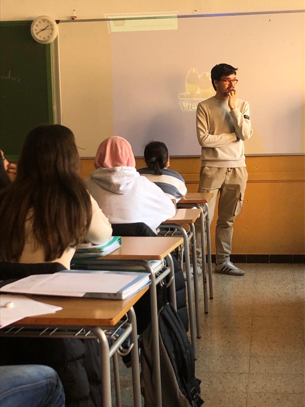 Marina Bravo, dos exalumnes del centre. Ells ens van venir a explicar com ha sigut el seu gran i llarg