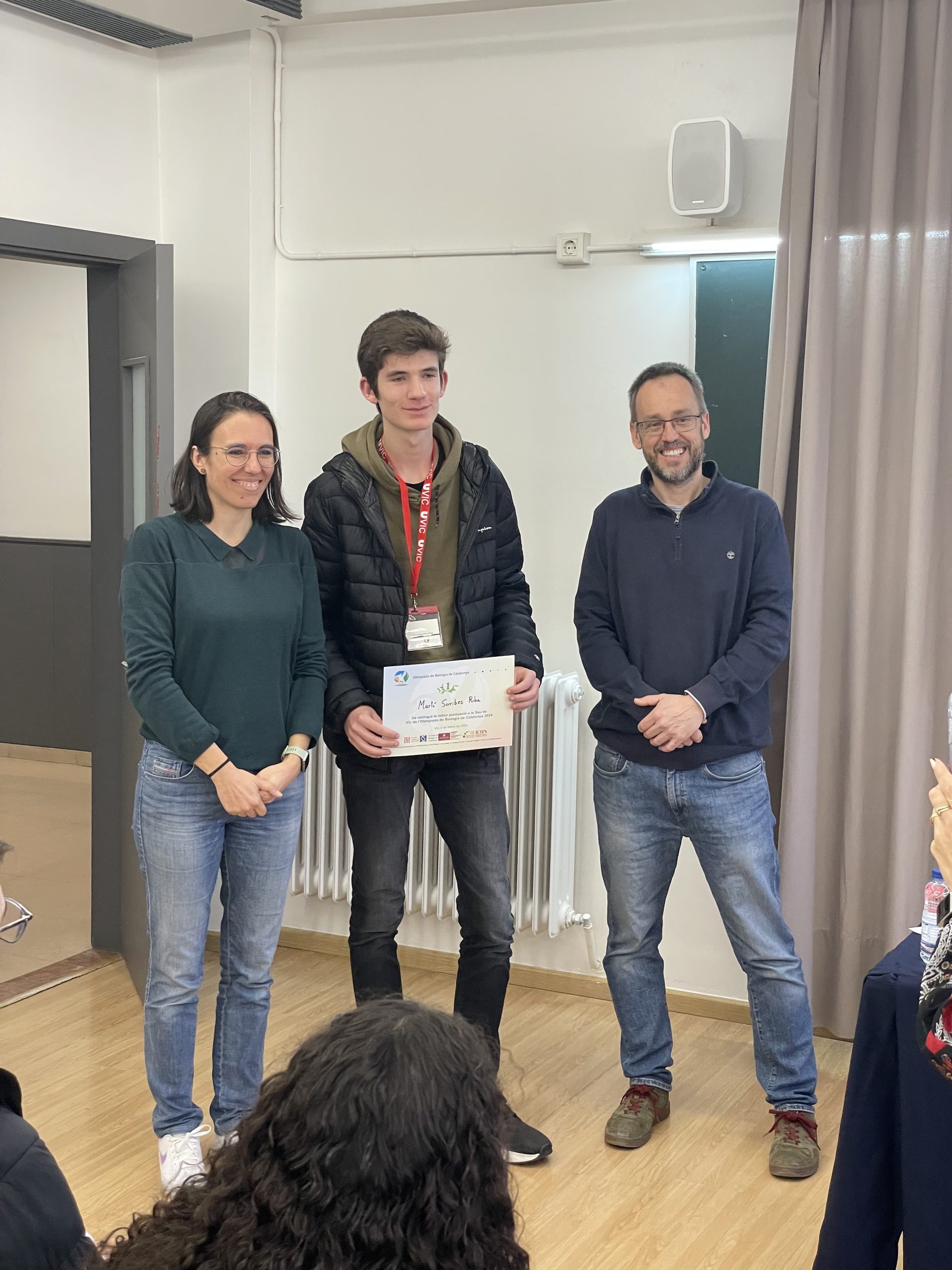 Estem molt contents perquè en Martí va quedar primer de la fase teòrica de la seu de Vic i és dels 20 seleccionats per realitzar la fase pràctica, que es va dur a terme ahir dimecres a la facultat de Biologia de la UB.