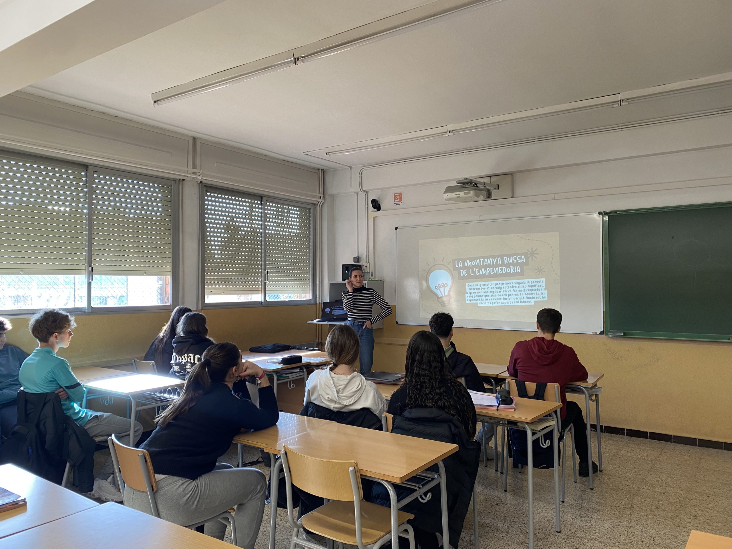 Aquest any el nostre institut també participa en el programa d’Idees Joves de l’Ajuntament de Manresa dins la matèria d’ECONOMIA de 1r batxillerat, i per això ens ha vingut la Gina Pérez a fer-nos una xerrada: ” La muntanya russa de l’emprenedor”.