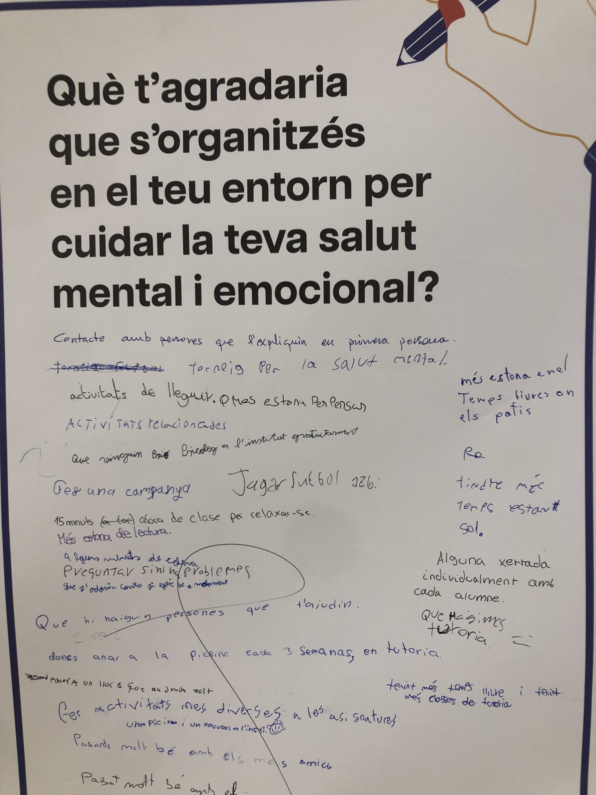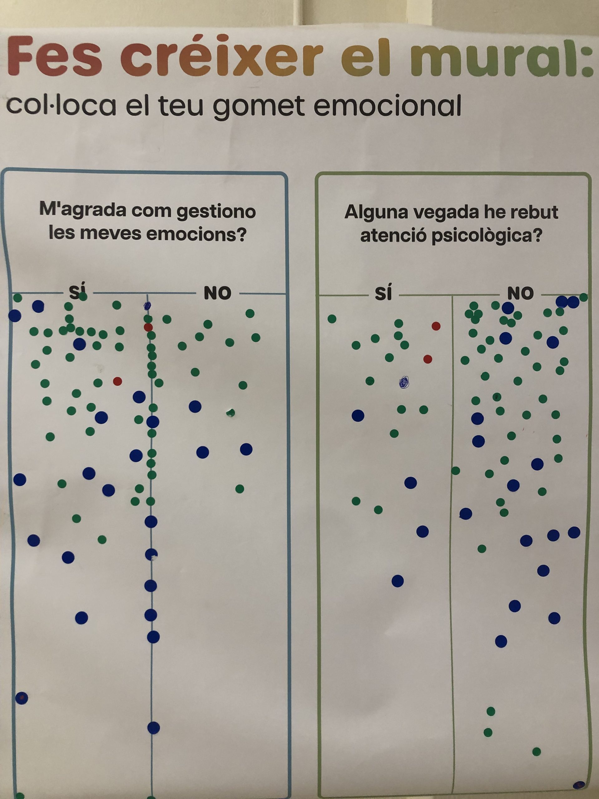 Hem col.laborat amb l’Espai Èmfasi de l’Ajuntament de Manresa omplint el mural: Com vas de salut mental? Aquí en teniu alguna mostra.