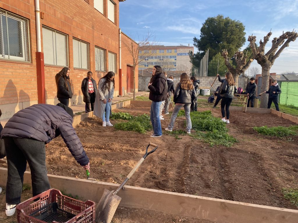 Aquest any tornem a tenir al nostre hort al Pius. L’hem reformat i estem molt il·lusionats amb el nou emplaçament. Hi passen els alumnes de l’optativa de 3r d’Emprenedoria. Aquesta optativa serveix perquè els alumnes formin grups de treball cooperatius i pensin ja com uns emprenedors inicials on cal prendre les primeres decisions empresarials. Les primeres tasques han estat fer el nostre propi adob, crear un logo, una marca, decidir què plantar i sobretot netejar l’espai per plantar.