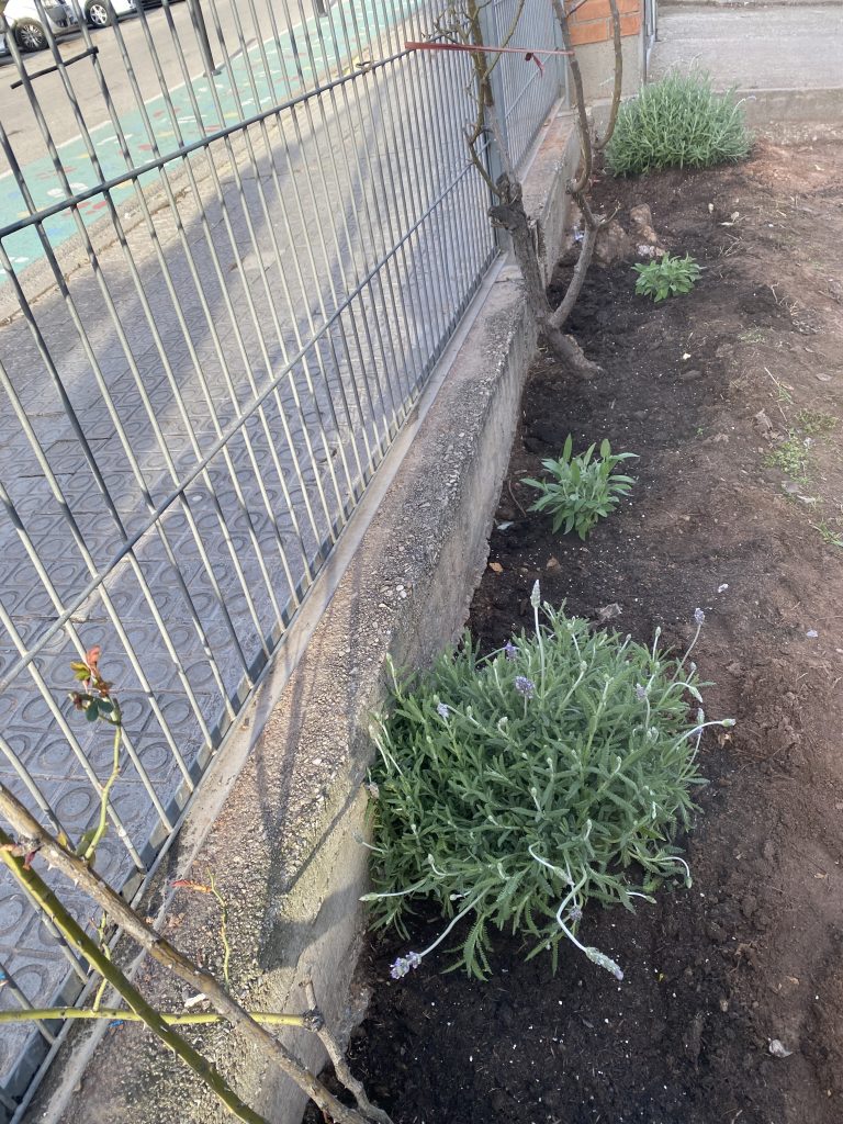 Amb els alumnes d’Estada a l’Empresa hem arreglat els jardins de l’entrada del nostre institut. Així tenim: sàlvia de flor, espígol dentata, romaní que penja i matrimonis.