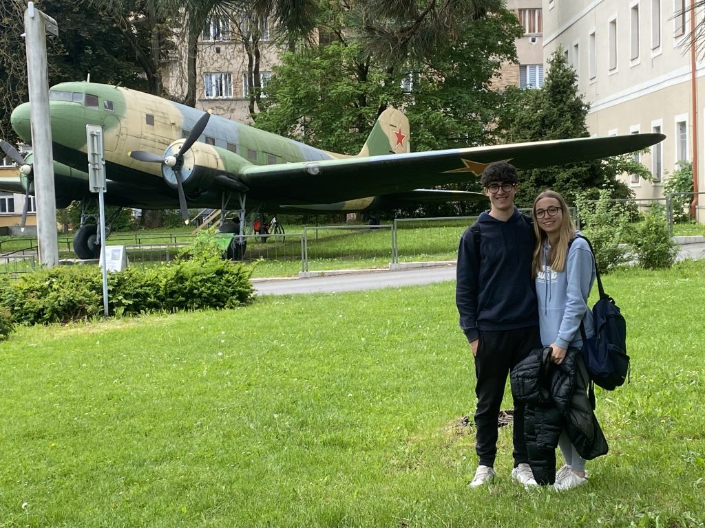 We were then guided to an open-air exhibition showcasing authentic military equipment used during World War II, such as tanks and a plane that was used to transport supplies. After visiting a replica of a bunker, we saw the Tomb of the Unknown Soldier and the eternal flame, both located at the Museum of the Slovak National Uprising.