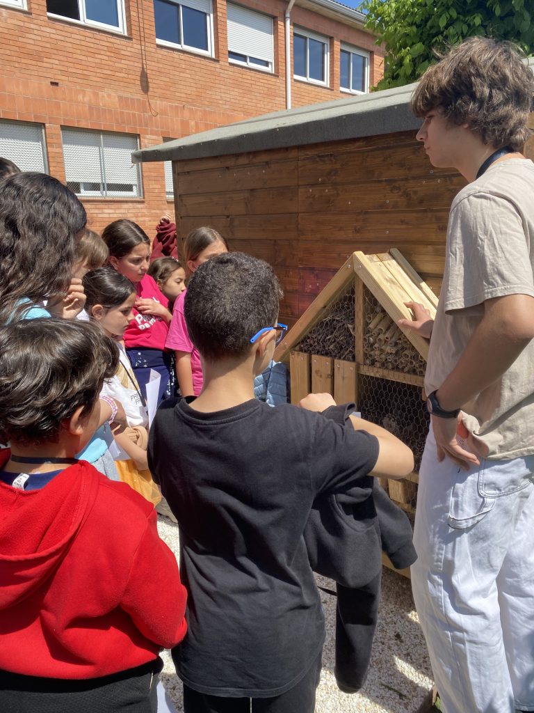 El dia 14 de maig a les 11.30h. van venir a veure’ns els delegats i delegades de l’escola Bages. Eren 13 nens i 3 adults. La Mireia Galera va ser la professora que es va posar en contacte amb nosaltres perquè volien veure com teníem muntat el nostre hort i com havíem construït l’hotel d’insectes. Els alumnes de 3r d’Emprenedoria els van ensenyar l’espai i el funcionament de l’optativa. Els va agradar molt les menjadores d’ocells, les faran segur el curs que ve! També es van endur uns enciams de l’hort, tothom estava molt content a la sortida.